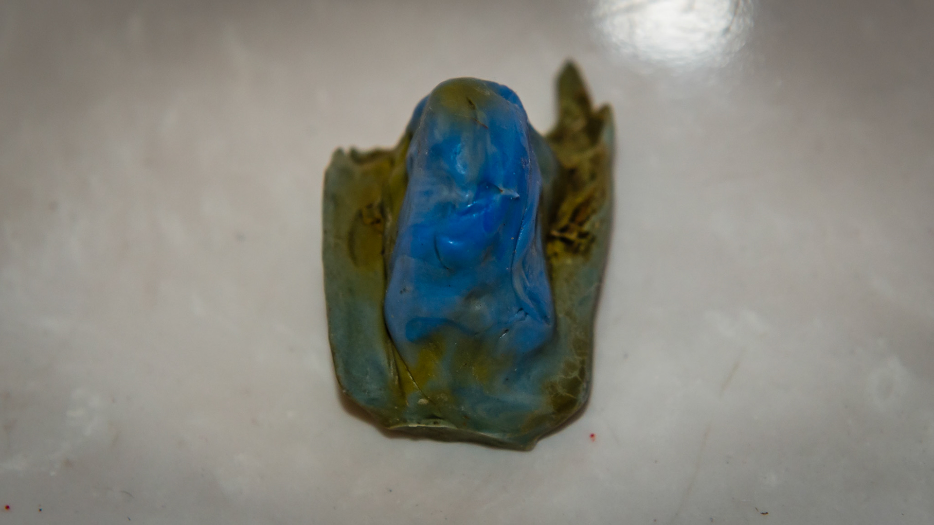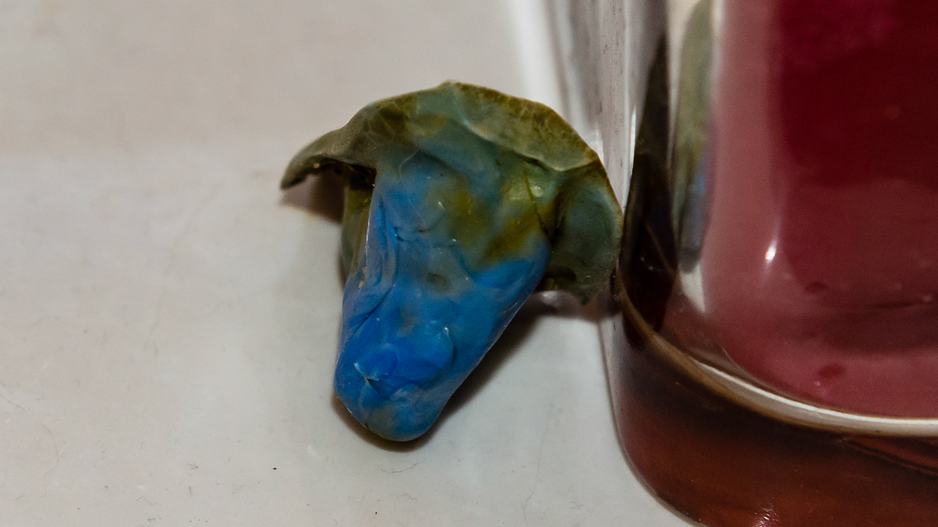 Sedated horse with a palatal sagittal fracture removal causing minor bleeding in the head down position.