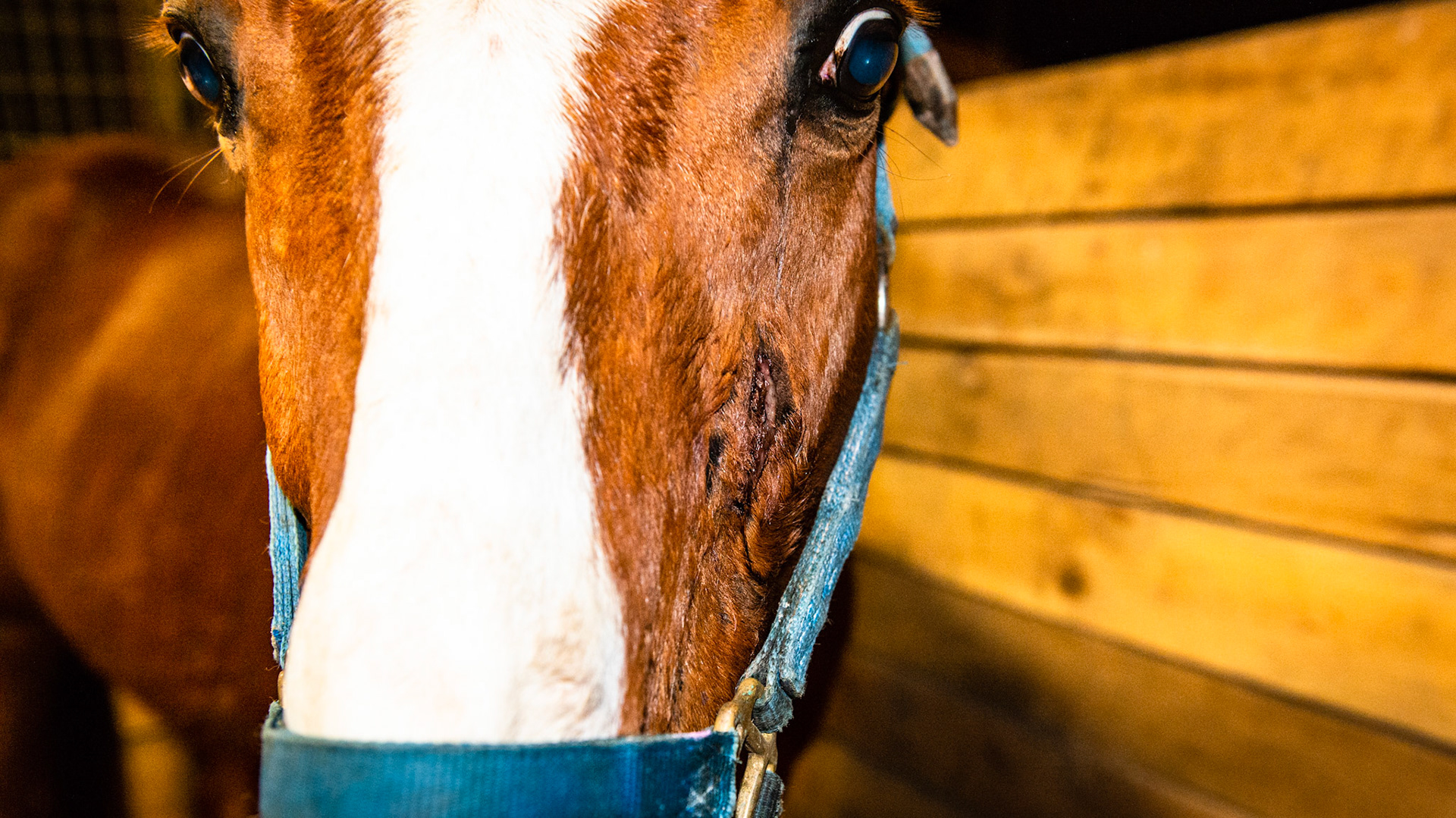 This horse has an apical tooth root abscess that has gone through the sinus and is draining through the face for almost 2 years (on and off antibiotics). The tooth was extracted but the drainage continued. About 6 to 9 months later a second adjacent tooth was extracted with no better results. The drainage continued for another year. THIS IMAGE is of the drainage before the first extraction.