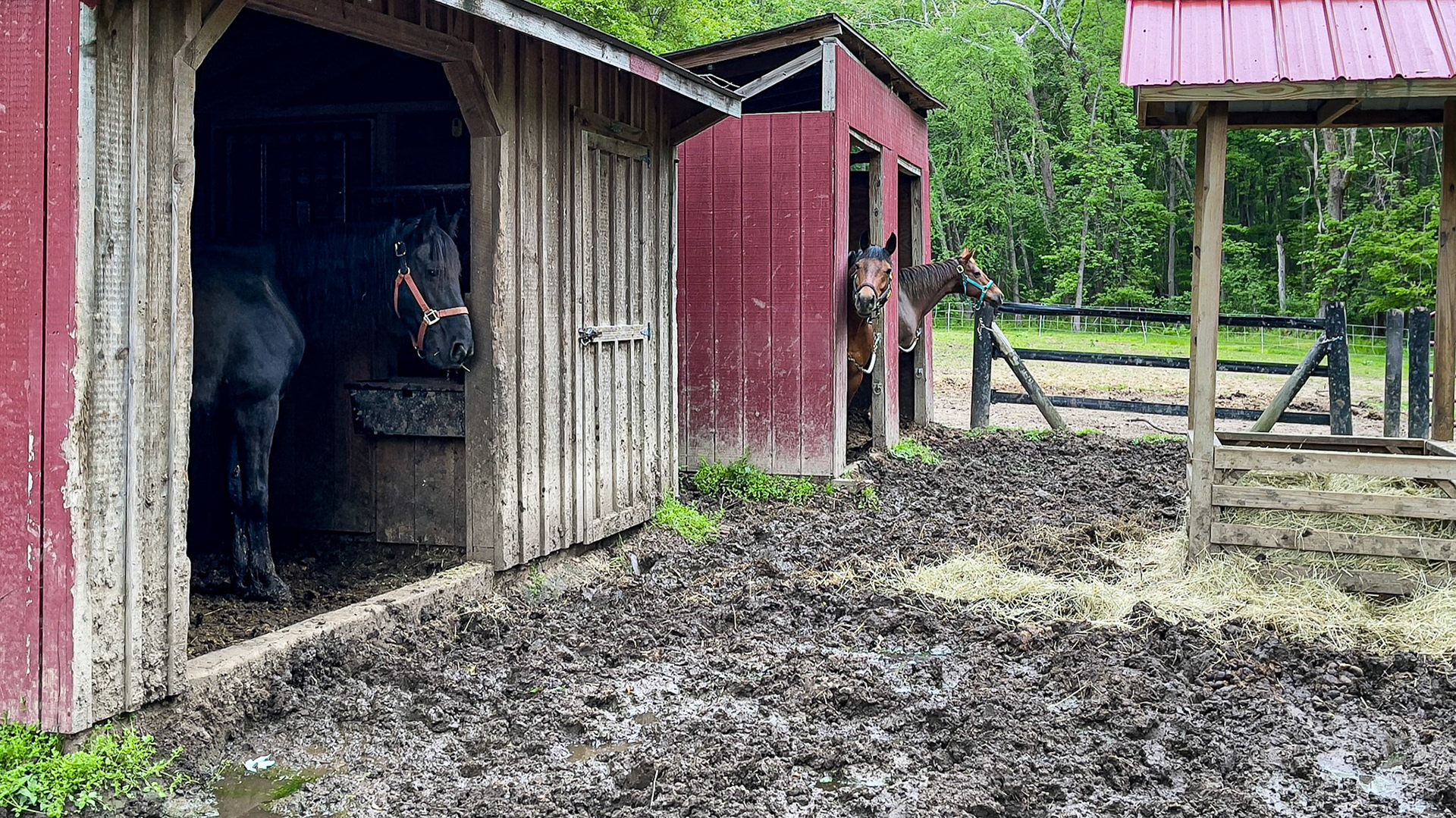 Small turn-outs allow the horse to walk in and out of their stalls during inclement weather.