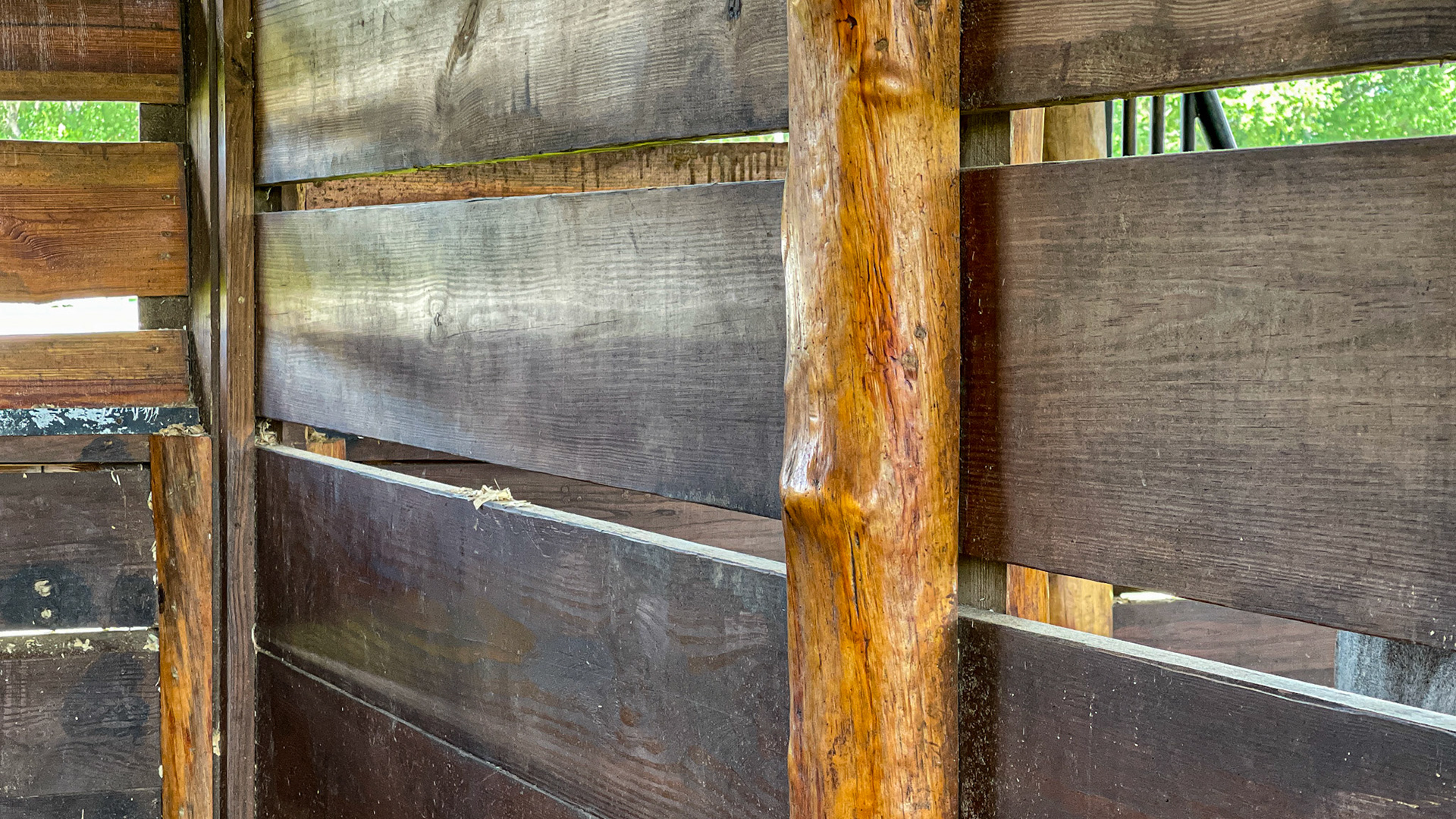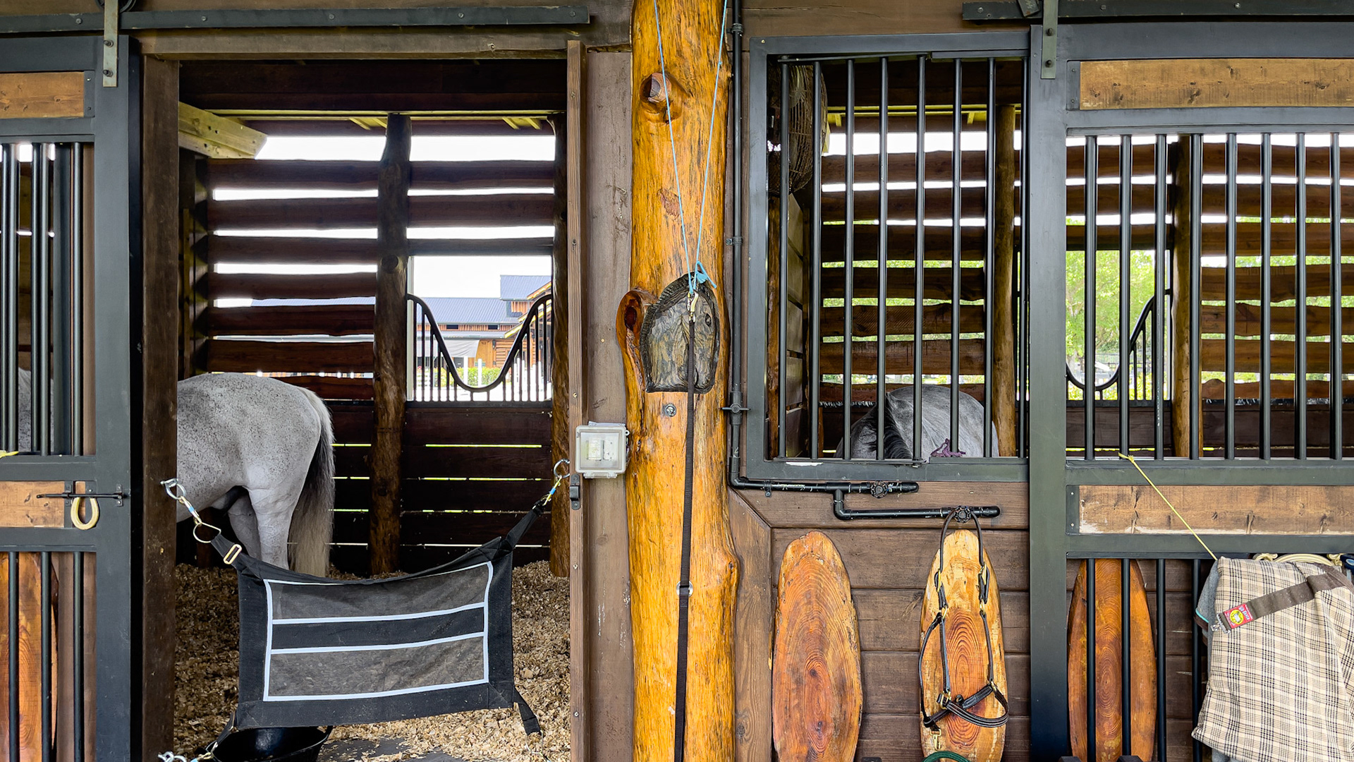 Electric wire inside a stall prevents the horses from chewing the wood. However, from a vet's standpoint, working in the stall is dangerous even with the electricity turned off because the horse doesn't know it is off and jumps when he accidentally touches it.